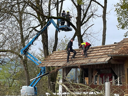 Dachrenovierung und Zuschnitt der umliegenden Bäume